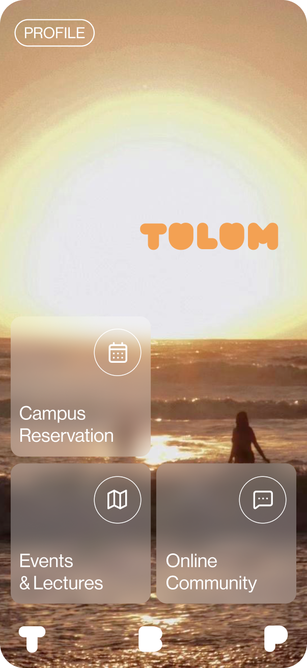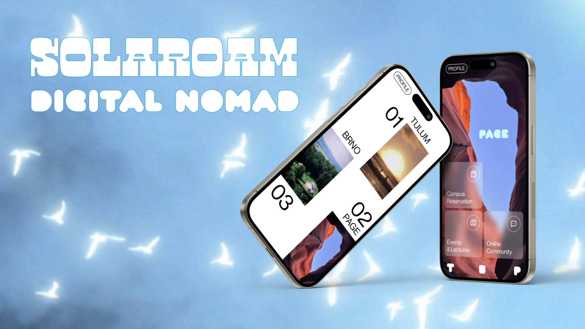 The app allows users to make reservations for three Solaroam campuses: Papeete, Brno, and Tulum. Users can also browse lectures, events, and the online community for each campus.